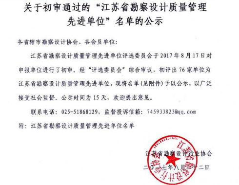 江蘇省工程勘察設(shè)計(jì)行業(yè)誠(chéng)信單位誠(chéng)信單位”的企業(yè)